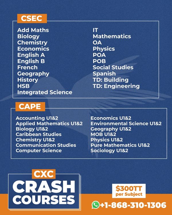 Cost: 9000 GYD Per Subject. Whatsapp an admin today!